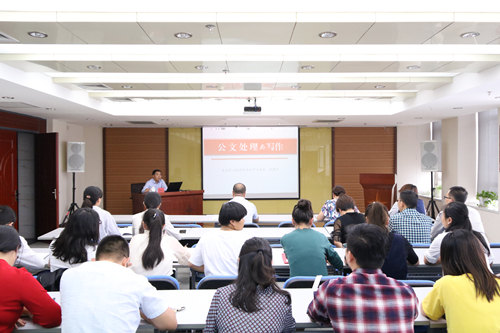 金融研究“人才小高地”建设实施方案>的通知》(宁国投党发〔2019〕83号)有关要求,加强集团公司公文管理工作,切实提高办公室文秘人员和相关部室工作人员公文写作处理能力和水平,学习和掌握公文处理的方法技巧。9月18日,集团公司邀请自治区政府办公厅文电信息处调研员何建平处长为讲授《公文写作与处理》专题培训。