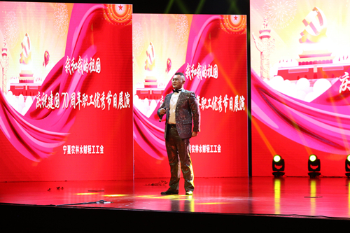 为庆祝中华人民共和国成立70周年,大力弘扬以爱国主义为核心的伟大民族精神,8月15日,宁夏农林水财轻工工会在宁夏工人文化宫成功举办庆祝建国70周年“我和我的祖国”职工优秀节目展演。集团公司选送的节目——独唱《我和我的祖国》同台参加了优秀节目展演。