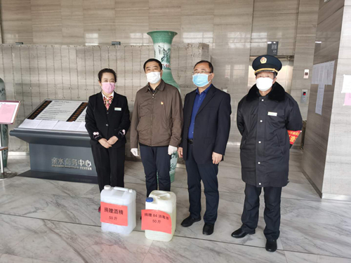 疫情当前,使命在肩。为了切实做好疫情联防联控工作,2月19日上午,宁夏国投集团将50斤“84消毒液”和50斤医用酒精送到了集团公司办公所在地——银川市金凤区北京中路亲水商务中心物业公司,有力地缓解了物业公司防疫物资短缺问题。